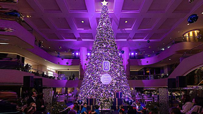 每年,矗立在晶華酒店中庭,三層樓高的聖誕樹一被點亮,聖誕的腳步就近了,總高近12公尺,今年樹身綴滿2,000顆Harry Winston品牌代表色的藍球與金球,搭配綠白色交織的榭寄生葉,充滿佳節愉悅氛圍;同時宣告,晶華聖誕季即日起至12月31日展開。