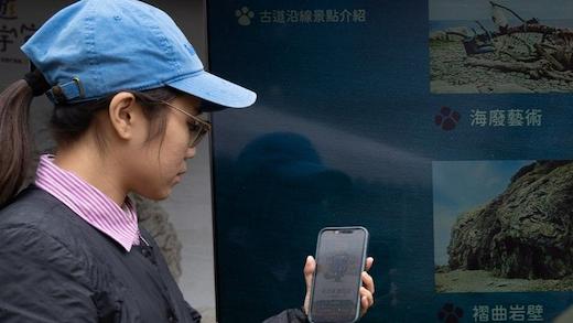 AR智慧導覽與Line數位嚮導系統,正式導入屏東阿塱壹古道,遊客透過手機可以即時接收部落歷史與文化深度導覽,用AI導覽串聯觀光打造部落創生經濟。圖 / 工研院提供
