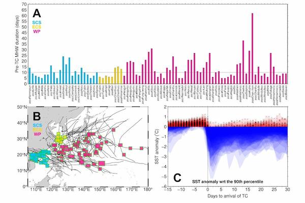 中央大學水文與海洋科學研究所所長潘任飛團隊的最新研究就顯示,颱風是海洋熱浪(Marine Heatwaves)的天然調節者,能夠快速有效消除並延遲海洋熱浪的出現。這項開創性的研究指出颱風與海洋交互作用的新發現,研究成果刊於近期出刊的國際頂尖期刊科學進展(Science Advances)。