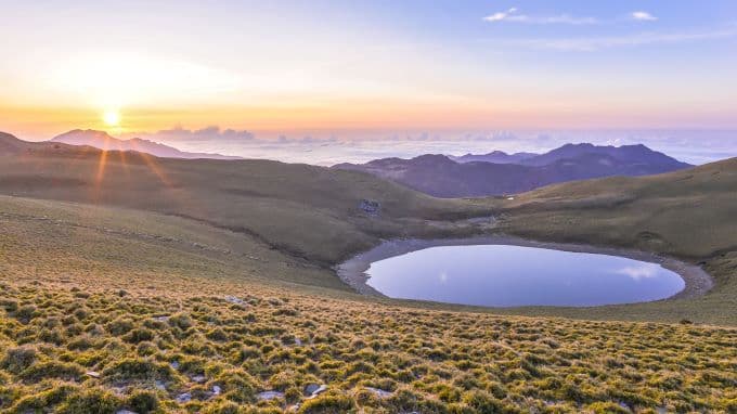 「位於台東的嘉明湖是台灣第二高的高山湖泊,也是地球上罕見的高山冰斗湖,從冰河時期至今,湛藍色的湖水從未枯竭,在太陽的照映下,清澈的湖面就像天使的眼淚般閃耀光芒,海拔高度超過3000公尺的嘉明湖,必須事先申請入山才能前往,儘管有一定的難度,但彷彿人間仙境般的絕美景色,仍然吸引許多登山客前往挑戰」。