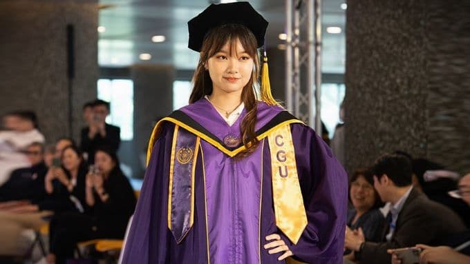 去年秋季長庚大學組成跨單位專案團隊,經由師生遴選企劃案後,正式委託宇璟設計共同規劃設計學士、碩士、博士三款學位袍,跳脫傳統黑色框架,代之以華麗、優雅、貴氣的紫色做大面積配置;金黃色裝飾用在學位袍正面、披肩、袖口、帽穗等處,透過學校雙代表色貫穿長庚精神與價值。
