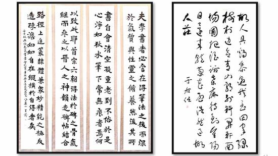在台灣,書法家于右任為開國元老,任監察院長34年,其書法特點將魏碑的雄渾與帖學的靈動結合,創立「標準草書」,許多專家學者評論此書,以易識、易寫、準確、美麗為原則,簡化張旭、懷素狂草,融入篆書古樸、隸書厚重、楷書端莊,雄渾大氣如江河奔騰,又具金石蒼勁與高雅氣質等獨特風貌。