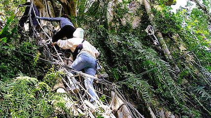 兩天的活動由鸞山森林文化博物館館長阿力曼親自導覽,帶領參與者走入千年白榕廊道,看盤根錯節、被譽為「會走路的樹」,在綠色穹頂光影變化下,宛如化身森林大教堂。其中,在「古老的智慧・森心靈療癒」課中,阿力曼點出布農族與山林共生的哲學,提醒「森林不是背景,是我們共同生活的家園」。