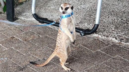 隔壁店家飼養了一頭動物園才可以見到的狐獴,繫於餐桌下,或立或走,不曾稍歇。狐獴是群居動物。這隻移居東港漁村,雖不愁衣食,卻不免讓人感到其孤單。我曾在高雄壽山動物園,看過一群狐獴在挖沙造洞,有的直立視察四週,其趣無比。然這隻千里流落,孤獨一生。令人為之悵然。