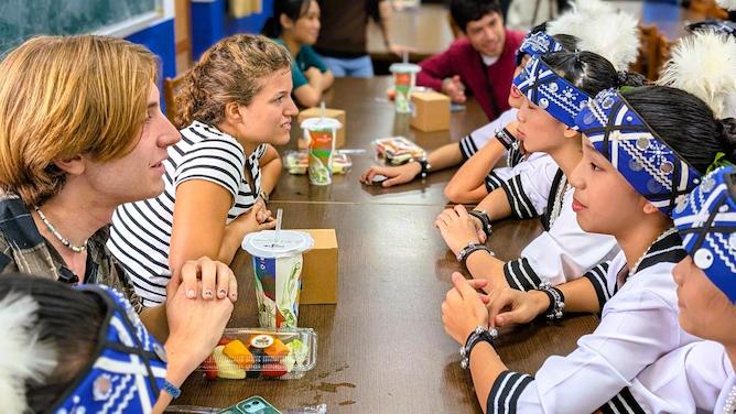 潛心耕耘「驚嘆號」這項台灣原住民族群永續教育計畫長達23年的東元文教基金會執行長蘇玉枝指出,透過跨文化訪學計畫,期待能讓世界走進部落,也讓部落走向世界。在基金會嚴謹安排下,學生們行前必須先到基金會上課,並由蘇玉枝親自講解台灣原民文化的基礎脈絡。
