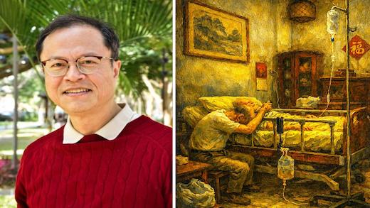 温宗益在成為全職藝術家前是一名醫師。但最近10多年間,他更長時間的身分卻是「照顧者」。長期照顧年邁且病重的母親,讓他的生活節奏徹底被改寫。不但創作的時間被切割,人生也被迫環繞著病房、家庭與責任團團轉。