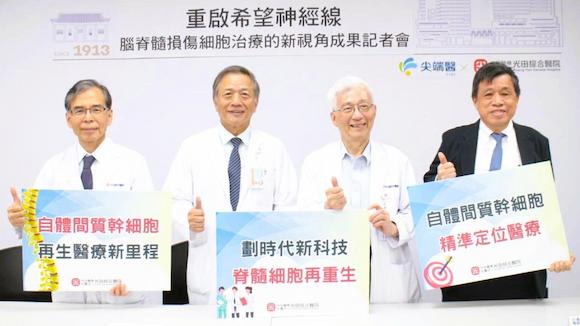 沙鹿光田綜合醫院上週五在台中沙鹿向上院區舉辦脊髓損傷細胞治療發表會,對外發表幹細胞應用於脊髓及腦損傷治療的臨床成果,現場光田綜合醫院總院長王乃弘、向上院區院長陳子勇、副院長張家築以及尖端醫(4186)董事長蘇文龍親自出席,見證成果。