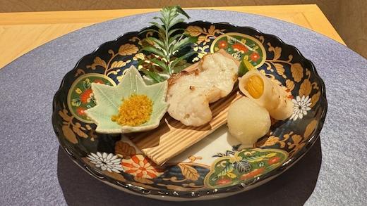 溫暖的九繪魚味噌鍋是整套會席靈魂,魚片入口柔滑、膠質豐盈,果然是冬季鍋物的王者,搭配椎茸、春菊、豆腐等時蔬,湯頭濃郁而不膩;接續的九繪魚煮付以甘醇醬汁慢煮,蘊含淡淡薑香,襯托魚肉的細膩彈性。