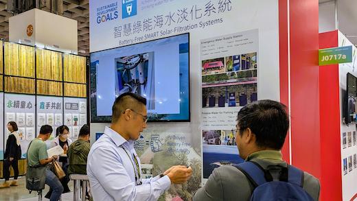 全面性成立逾20年,董事長廖禎松今年7月剛卸下太陽光電發電系統公會理事長職務,全力衝刺公司業務。目前,全面性已成功跨足太陽光電、充電站、儲能系統與EPC,成為國內綠能整合的重要推手。以今年能源展為例,完整展示旗下多元業務與產品線,其中,更包括揮軍東協有成的海淡機「智慧綠能海水淡化系統」與長期經銷的變流器品牌最新款產品,成果亮眼、備受矚目。