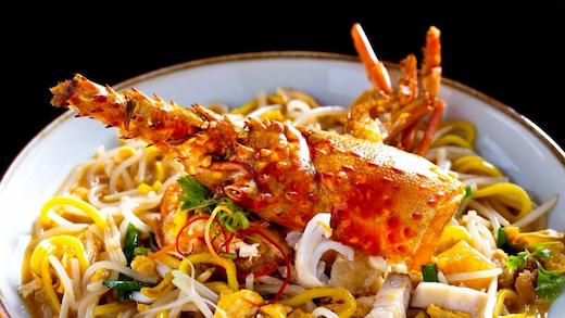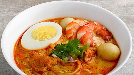 晶華表示,Justin此次客座為中庭azie餐廳帶來多道經典菜色,其中,新加坡叻沙麵熬煮蝦殼與各式香料再加入椰奶製成金黃湯底,辛香濃郁卻不失清爽,滋味層次高檔;明蝦拉麵則以濃郁鮮甜的蝦湯融合日式湯底與星洲香料特製,明蝦彈牙湯頭鮮美厚實,香氣縈繞。