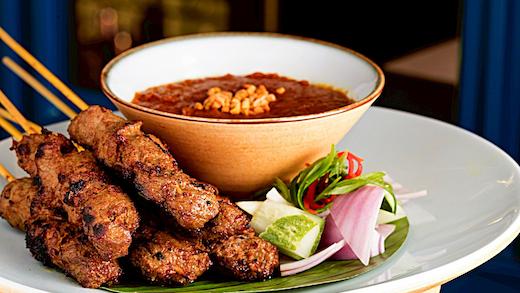 JQ's鑊炒龍蝦麵則是將新鮮龍蝦與特製高湯翻炒,鑊氣與鹹鮮交織,令人飽足滿意,這也是主廚在新加坡餐廳的招牌。其他值得推薦的還有結合花生醬與東方香料的炭烤沙嗲羊排;以鳳梨、秋葵與辣椒堆疊出酸香辣韻的娘惹酸甜椒醬酥炸海魚;以貢布白胡椒燉煮排骨、溫潤香濃的新加坡肉骨茶等,道道皆展現融合東西精湛廚藝與味覺創意。