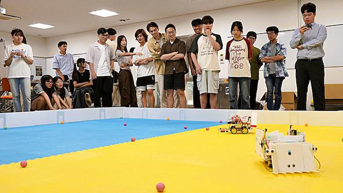 其中,九州工大場包括九州工大16人、北科大10人、韓國釜山大學15人三校混合編組6隊出賽。各隊自走車必須全自動運作,具備辨識顏色、定位與抓取等功能;大阪工大場則有來自大阪工大16人、北科大12人、泰國法政大學與中國同濟大學各6位學生投入。前者比賽自走車物件抓取;後者取材日本夏季傳統遊戲蒙眼擊碎紙製充氣西瓜,過程各有可觀與難度。