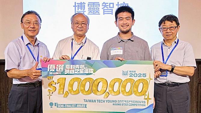 臺科大傑出校友聯誼會年度臺科青創明日之星選拔,今年得主由博靈智控團隊脫穎而出,贏得優選殊榮,勇奪該會頒發百萬創業獎金。